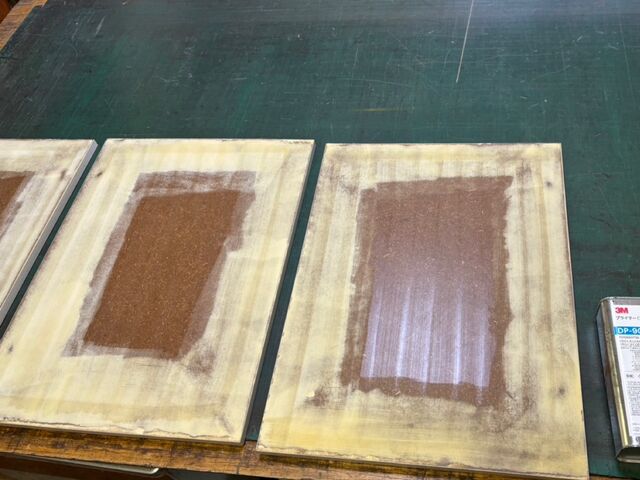 取り外せない箇所は現場で貼りますが、しっかりと養生をして下地処理の作業をします。