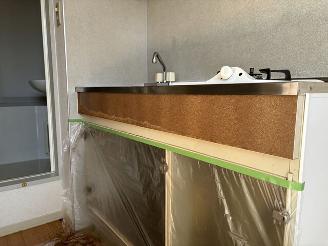 賃貸アパートのキッチン流し台、シート貼りのご依頼をいただきました。