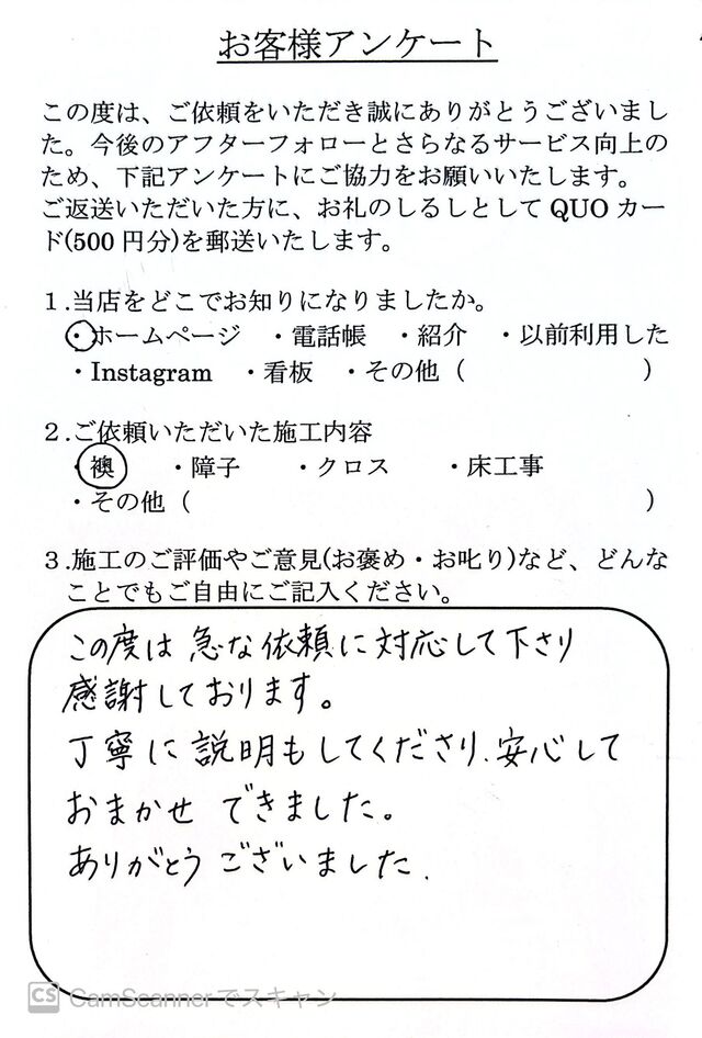 ホームページから襖の貼替をご依頼いただきました。