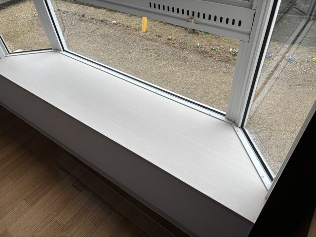 出窓カウンターは、日光や湿気の影響を受けやすいので耐候性のダイノックシートを貼りました。