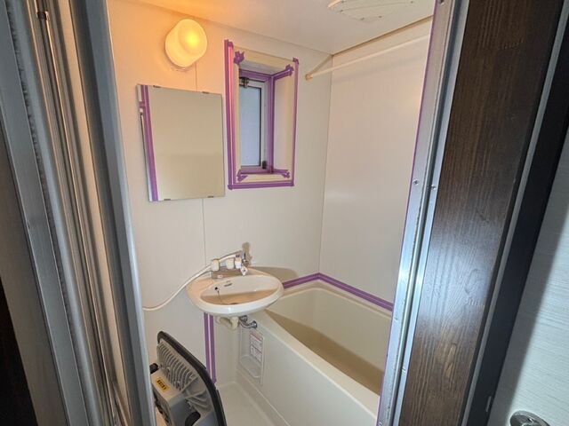 こちらは施工中の写真ですが、浴室のコーキングの打ち替えも行いました。